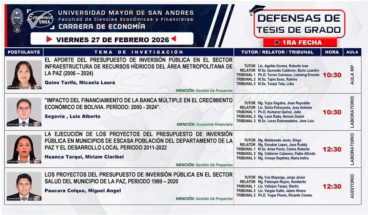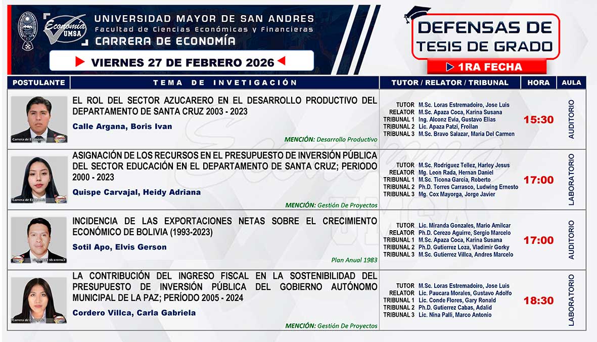 Carrera de Economía de la Universidad Mayor de San Andrés - CARRERA ECONOMÍA
