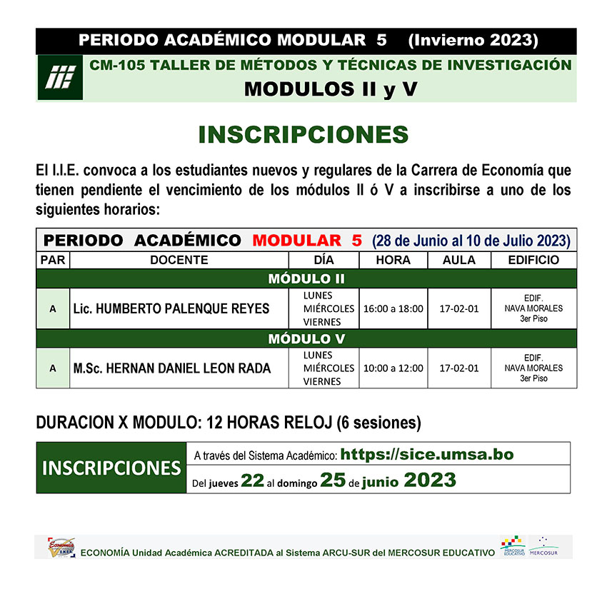 📍 PERIODO ACADÉMICO MODULAR 5 (INVIERNO 2023) - CARRERA ECONOMÍA