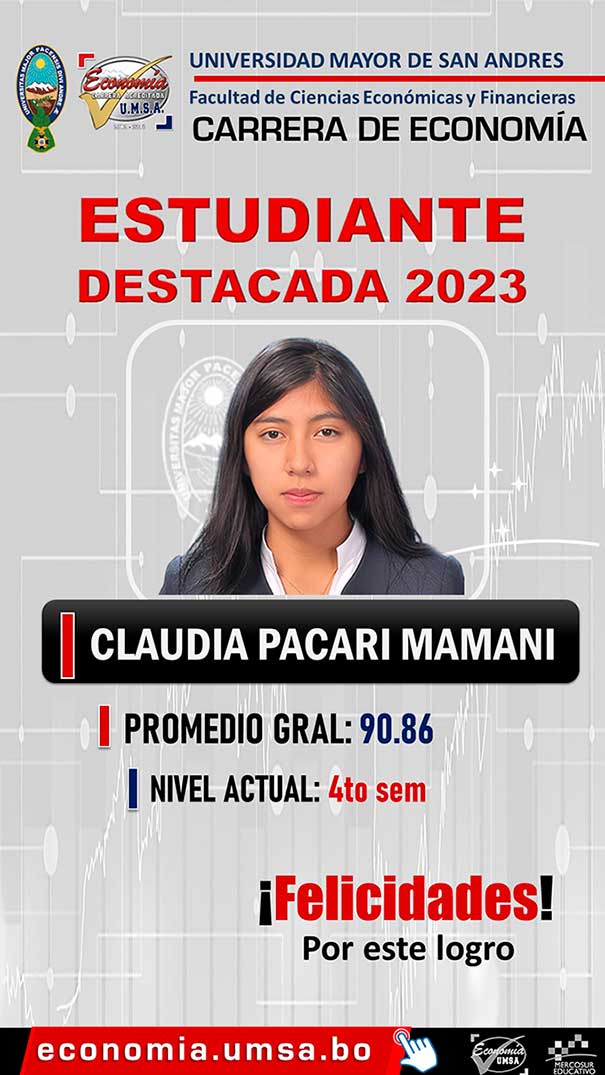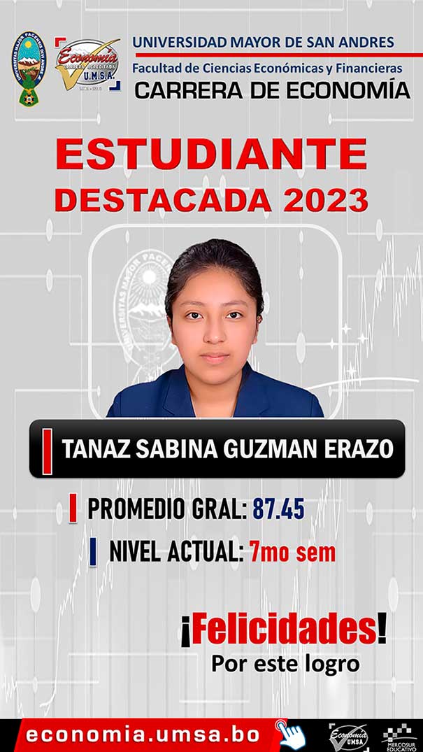 La Dirección de la Carrera de Economía, se adhiere al reconocimiento de sus mejores estudiantes que han recaído sobre: