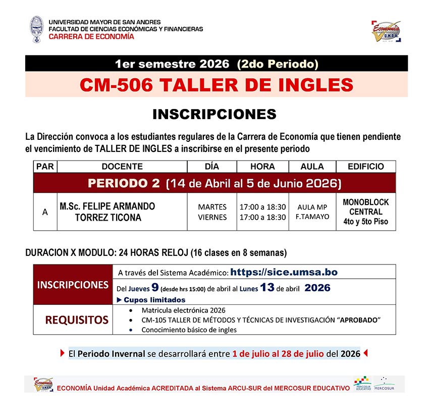 Dirigido a estudiantes de últimos semestres o recién egresados de Economía - U.M.S.A.